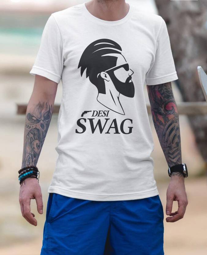 Men Printed, Typography Round Neck Polyester White T-Shirt