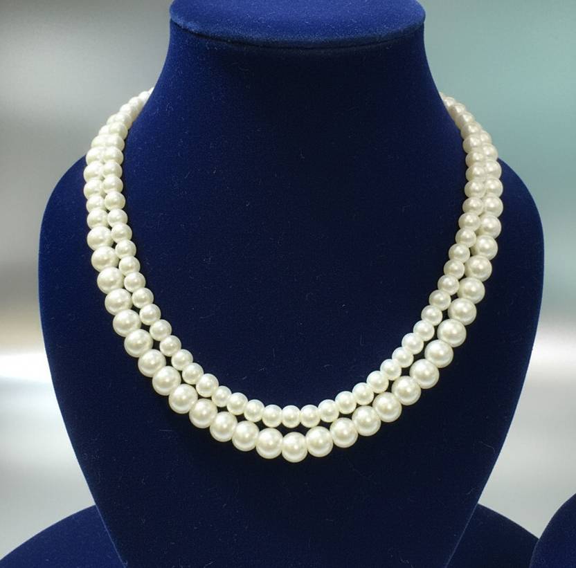The necklace drapes gracefully, with the inner strand typically a choker or princess length and the outer strand slightly longer, creating a voluminous and stately look. This style is often chosen for formal occasions, bridal wear, and as a powerful statement piece.