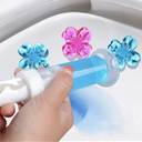 COMPLETE SET: Includes 6 vibrant flower-shaped gel tablets in different colours, 2 mounting brackets, and easy installation accessories, LONG-LASTING: Each gel tablet provides up to 300 flushes of continuous freshening and cleaning action for your toilet bowl, EASY INSTALLATION: Simply attach the mounting bracket to your toilet bowl rim and insert the gel tablet - no tools required, FRESH FRAGRANCE: Flower-shaped stamps release a pleasant scent while cleaning, keeping your bathroom fresh with every flush, COLOURFUL DESIGN: Features 6 bright colours - orange, green, yellow, pink, blue, and purple - adding a decorative touch to your toilet