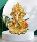 Mishtukocrafts Mishtukocrafts Peach Ivory Ganesha Statue/idol /murti for home/office/room Resin Decorative Showpiece - 8.75 cm (Resin, Peach)
