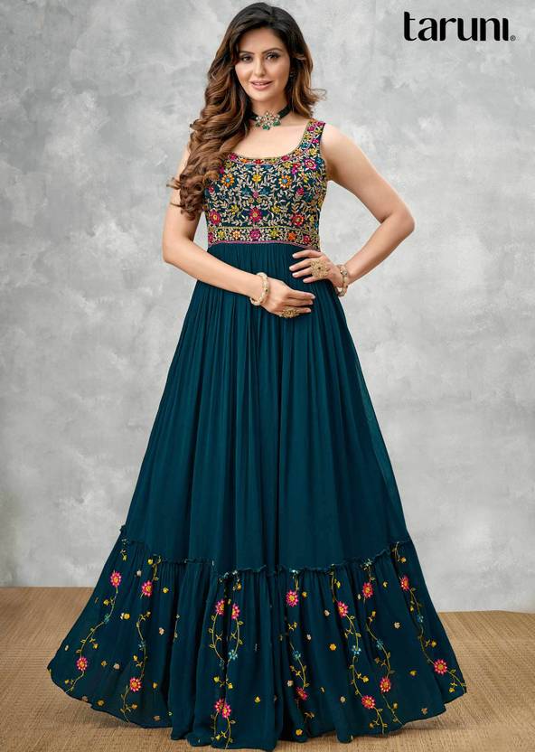 Embroidered Georgette Stitched Anarkali Gown (Multicolor)