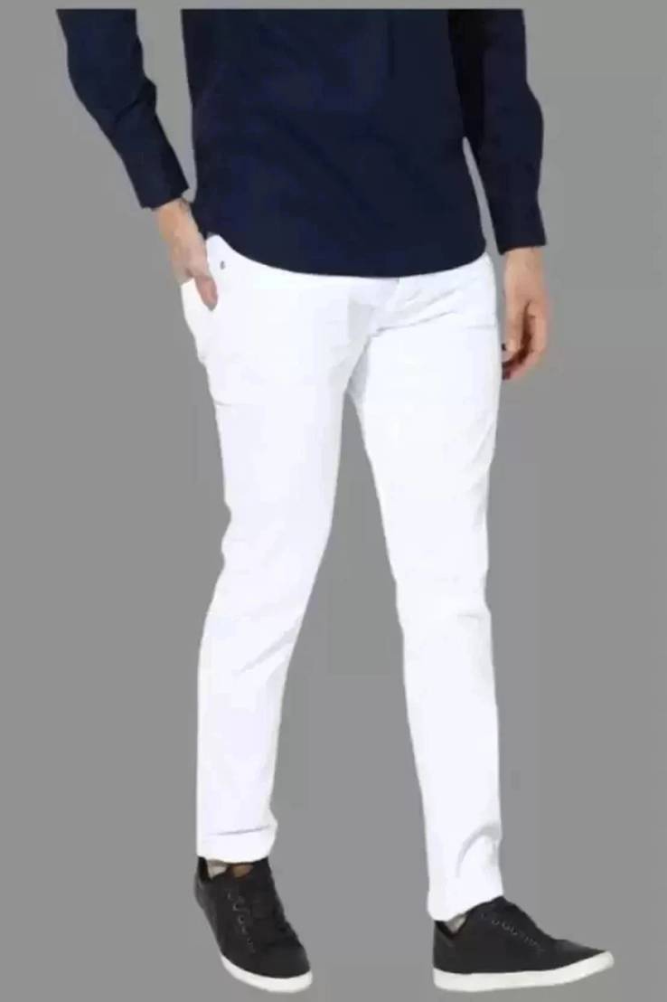 Premium quality stretchable denim fabric, Button closure with secure zip fly, Deep white color—ideal for both casual and semi-formal wear, Suitable for daily wear, office, or weekend outings