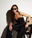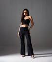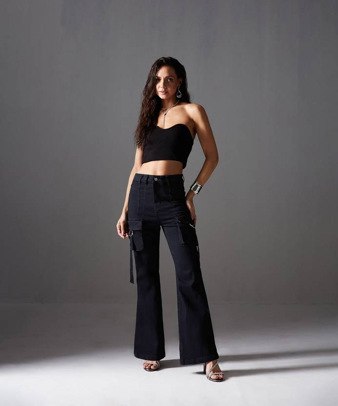 Black Bootcut High-Rise Clean-Look Regular-Length Stretchable Denim Jeans. It Is With Belt-Loops And Button And Zipper Fly.