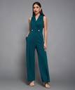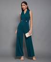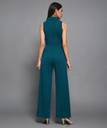 Teal Notched Collar Sleeveless Solid Wrap Regular-Length Jumpsuit. It has inverted pleat and back closure.
