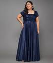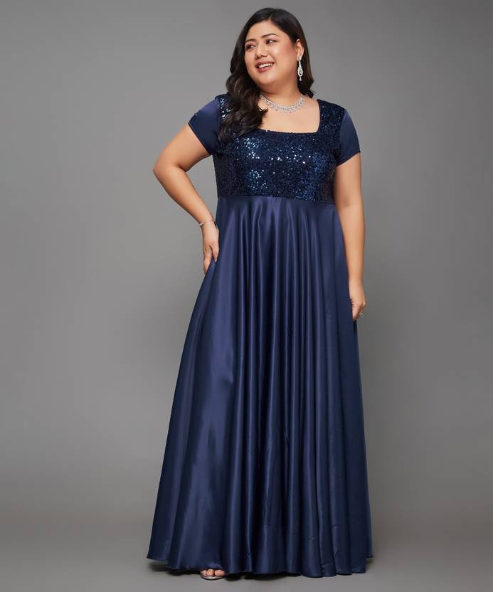 Miss Chase Women Fit and Flare Blue Maxi/Full Length Dress