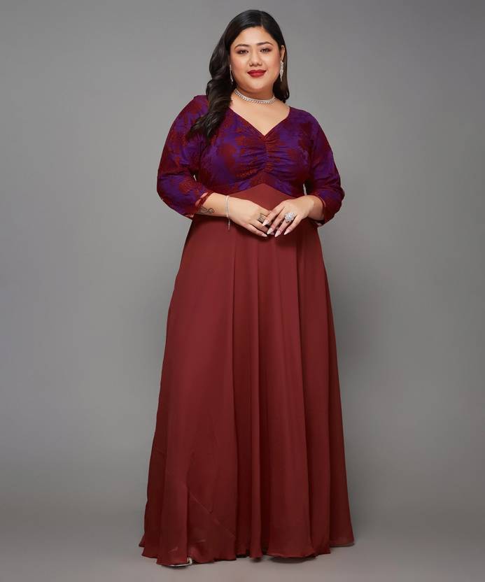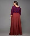 Brick Red Geogette Fit & Flare Maxi Dress. It has a Sweet heart neckline and 3/4th Sleeves. It has contrasted lining and concealed zipper.