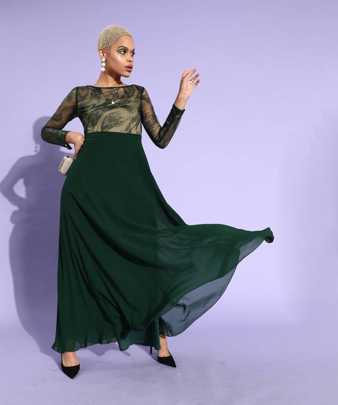 Miss Chase Women Maxi Green Full Length Dress