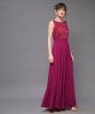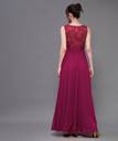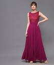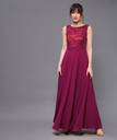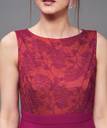 Dark Pink & Rust Georgette Self Design Lace Overlaid Regular Dress. It has a boat neck and is sleeveless. It has a concealed zipper in the side and has contrasted lining.