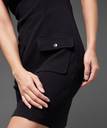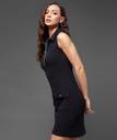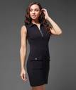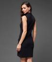 Black Collared Sleeveless Polyester Solid Bodycon Knee-Long Dress.It has a princess paneled.It has a patch pocket.It has a metal zipper with ring puller
