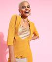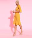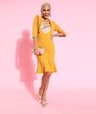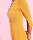 Mustard & Golden Polyester Solid Sequin Paneled Blazer dress Midi Dress. Has a sweetheart neckline and 3/4th slit sleeves. Has sequin panel and embellishment detailing