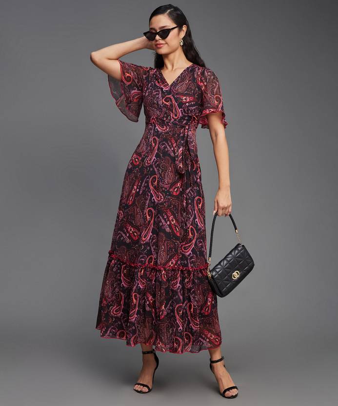 Miss Chase Women Wrap Multicolor Midi/Calf Length Dress