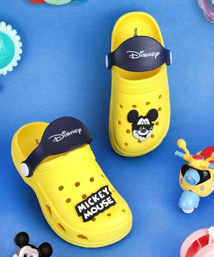 Miss & Chief Disney Clogs for Kids are fun, colorful and comfortable footwear designed for everyday wear. Made from high-quality EVA material, these clogs are lightweight, durable, waterproof, quick-drying and easy to clean. The breathable holes on the upper ensure proper airflow, while the thick non-slip sole provides safety and stability during walking or running. An adjustable back strap allows two-way wearing, making them versatile as sandals or slippers for both indoor and outdoor use. Each pair comes with attractive Disney character charms like Mickey Mouse, Pluto, Goofy and more, along with multiple color variants that make them exciting for children to wear. Suitable for boys and girls of different age groups, these clogs are perfect for home, school, playground, garden, beach, poolside or casual outings, and also make a wonderful gift choice for kids on special occasions.