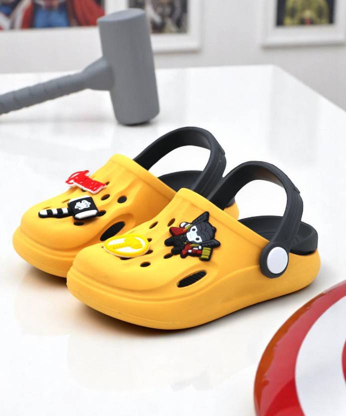 Miss & Chief Marvel Clogs for Kids are designed to offer comfort, durability and fun for everyday wear. Made with high-quality EVA material, these clogs are lightweight, breathable, waterproof, quick-drying and easy to clean. The upper holes design allows proper air circulation to keep little feet cool and fresh, while the thickened non-slip outsole ensures grip and safety on different surfaces. The adjustable back strap lets children wear them in two ways, either as open-back slippers or as secure closed-back sandals, making them versatile for both indoor and outdoor use. Each pair features attractive Marvel-themed charms such as Iron Man, Captain America, Hulk, Spider-Man and more, which add a playful and stylish look that kids will love. These clogs are suitable for boys and girls across different age groups and can be used at home, in the garden, at school, during beach outings, pool activities or casual outdoor play. With their soft, durable build and colorful superhero designs, these clogs also make an excellent gift choice for kids on birthdays and other special occasions.