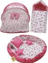 Miss & Chief Cotton Baby Bed Sized Bedding Set (Pink Moon, 1 Mattress With Net, 1 Pillow, 1 Carry Bag, 1 Baby Nest With 2 Heart & 1 Pillow)