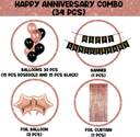 ANNIVERSARY DECORATION ITEMS COMBO | 34PCS HAPPY ANNIVERSARY DECORATION KIT : Rose gold happy anniversary decoration kit packet include 1pc Black happy anniversary banner , 15Pcs rose gold Metallic Balloons, 15Pcs lack metallic balloons, 2Pcs rose gold star foil balloons and 1Pc rose gold foil curtains kit for anniversary decorations at home or bedroom. CREATE ROMANTIC ATMOSPHERE AT HOME & GIVE SURPRISE : It creates a mesmerising environment for the couple.This decor set can be a gift to bhaiya bhabi, brother, husband,wife, daughter in law, son in law, mom dad or any star couple. You can surprise the special loved ones with our unique fancy anniversary set.Put up great photos of the couple or your husband or wife,put the happy anniversary banner, put foil curtain as a backdrop, foil balloon and you are set to celebrate the anniversray.COMBINE WITH OTHER PARTY ITEMS SET : This happy anniversary banner can be combine with other party items like happy anniversary golden foil balloons, red, black, golden, silver metallic or latex balloon, heart shape foil baloon, golden red star foil balloon, fringe foil curtains, led string lights, photo light hanging, happy anniversary cake toppers, surprise explosion box, candles, anniversary balloon bouquet, happy anniversary card, cup cake topper, personalised anniversary photo booth props.USE IN ANY ANNIVERSARY THEME PARTY OR YEAR CELEBRATION : This black and golden happy anniversary banner can be use for any year anniversary decoration like 1st , 2nd, 3rd, 10th, 11th, 15th, 20th, 25th, 30th, 40th, 50th, 60th anniversary or any colour theme anniversary parties like red and black, silver jubilee celebration, golden colour fifty anniversary party.CREATE MEMORABLE ANNIVERSARY DECORATION PICTURES : Want to capture a fabulous anniversary party Instagram picture for your dear one?? buy this… decorate your room, bedroom, home click and post !!! You are just one step away.All the family members, friends, guests, parents, power couple, will sure From the house of BRND.ME