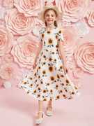 Miss & Chief Girls Above Knee Party Dress (White, Full Sleeve)