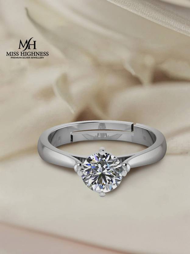 Miss Highness 925 Sterling Silver Solitaire Adjustable Ring | Premium Sparkle Ring for Women Sterling Silver Cubic Zirconia Rhodium Plated Ring