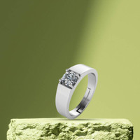 Miss Highness 925 Sterling Silver Adjustable AAA+ Zircon Solitaire Ring for Men Sterling Silver Cubic Zirconia Rhodium Plated Ring