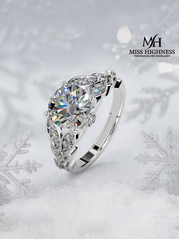 Miss Highness Floral Design Solitaire Diamond Adjustable Ring – Luxury Gift for Women & Girls, Sterling Silver Cubic Zirconia Rhodium Plated Ring