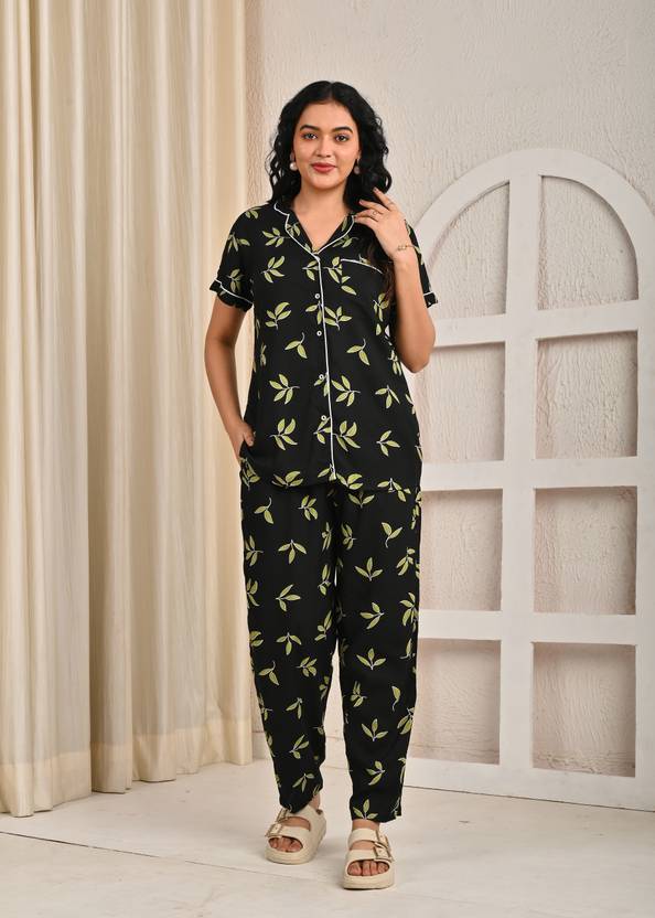 Stay stylish and comfortable all night long with Miss Rekha Printed Night Suit, crafted from soft and breathable cotton fabric. Designed with half sleeves, this nightwear set is perfect for a relaxed and cozy sleep. The trendy printed pattern adds a touch of charm, making it a must-have addition to your nightwear collection. Whether for bedtime or lounging at home, this night suit ensures comfort with elegance.