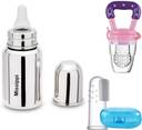 MISSIPPI 150 ml Stainless Steel Feeding bottle+Baby Finger Brush+ Fruit Nibbler COMBO (Silver)