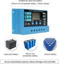 (1) Solar charge controller comes with LCD display that can clearly indicate the battery charging status, you can conveniently switched modes and parameter configuration. (2) Solar charge controller work with 12v and 24v panel, you can set float voltage (Float voltage is max battery charge voltage), discharge reconnect (Load on after this voltage), discharge stop (Load OFF on this voltage) and work mode (When you set hours setting then load ON after sunset automatic). (3) Solar charge controller suitable for solar power system, solar streetlight, etc. (4) The Solar charge controller is only suitable for lead acid batteries: OPEN, AGM, GEL, not for nickel hydride, lithium, Li-ions, or other batteries.