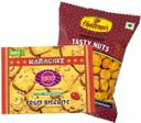 Karachi bakery Fruit Biscuits 250gms, Haldirams Tasty Nuts 150gms, 1 Mithai4all Branded Paper Bag