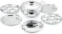 MITHALI Stainless Steel Multi Kadai with 2 Idli, 2 Dhokla & 1 Patra Steamer Plate Induction Idli Maker (5 Plates , 14 Idlis )
