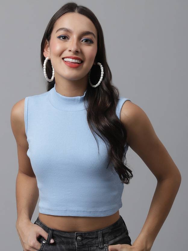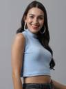 MITOS Casual Sleeveless Solid Women Light Blue Top