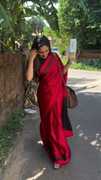 MITRACREATION Printed Bollywood Satin Saree (Red)