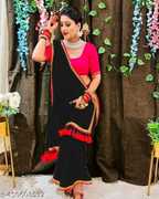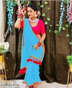Crafted from high-quality Georgette fabric, this saree is soft, breathable, and easy to drape, offering both comfort and style. It comes with a matching blouse piece for a complete look, and its delicate border and subtle embellishments add a touch of sophistication. Ideal for weddings, parties, or casual events, this saree is versatile and easy to maintain, making it a timeless piece that can be styled in multiple ways.
