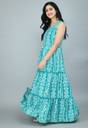 Printed Rayon Blend Stitched Straight Gown (Blue)