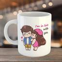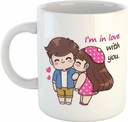 Mitti Cute Love Couple Cartoon Printed Coffee-I'm in Love with You Quote Ceramic, Bone China Coffee Mug (350 ml)