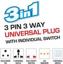 This multi-plug comes with an indicator light which glows whenever the plug is connected to a power source indicating that it is working correctly. This light indicator makes this multi-plug convenient to use. Individual switch &LED indicator: Individual for each socket with separate on/off switch