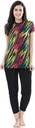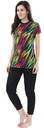 The contrasting designs of the top and bottom pieces are sure to make you stand out from others even on a busy beach or swimming pool. While the top boasts a striking multicolour striped pattern, the bottoms are a basic black colour. This beautiful contrast creates a unique look that is sure to make you look and feel great as you enjoy the hot summers in the cool water.