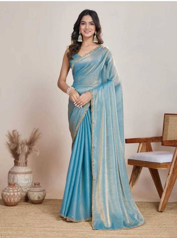 mitva fashion Solid/Plain Bollywood Silk Blend Saree (Light Blue)