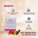 | Key Features | - Shields the skin from harmful UV rays: Day cream with UV protection creates a barrier on the skin that helps shield it from the damaging effects of both UVA and UVB rays., Maintains skin hydration: Many day creams with UV protection also have moisturizing properties, helping to keep the skin hydrated and supple throughout the day., Acts as a convenient all-in-one product: Combining UV protection with the benefits of a day cream streamlines your skincare routine, eliminating the need for separate sunscreen and moisturizer application, promote a smoother, more even complexion, reducing the appearance of blemishes and discoloration., Light weight and non greasy