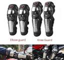Breathable thickened lining with firm PP shell, easily absorb sweat and effectively reduce impact, durable for long term use. Quick-release straps with high elasticity, easy to wear and remove, free to adjust and perfect fit with ergonomic comfort. Tough alloy steel plate with holes, non-slip, lightweight and drop resistant, enhance the protection of your knees and elbows. Cool and fashion design, universal suitable for different users, enhance your safety during your driving of motorcycles, bikes Material: Alloy Steel + Elastic Strap + EVA + Diving Fabric Color: Black Knee Pad Size: appr.42*15cm Elbow Pad Size: appr.32*13cm Package Weight: appr.800g