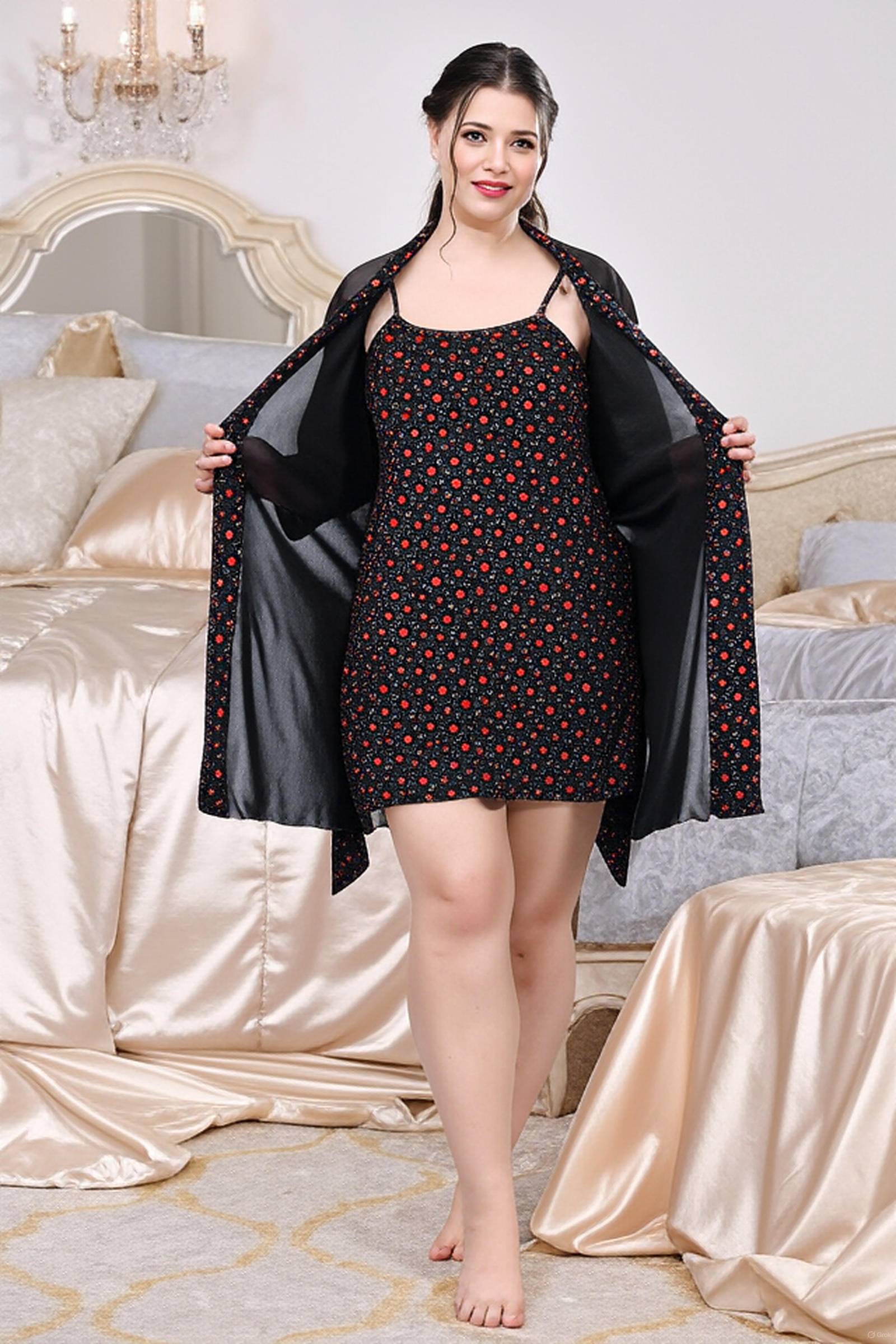 Nighty Villa Women Nighty with Robe (Green)