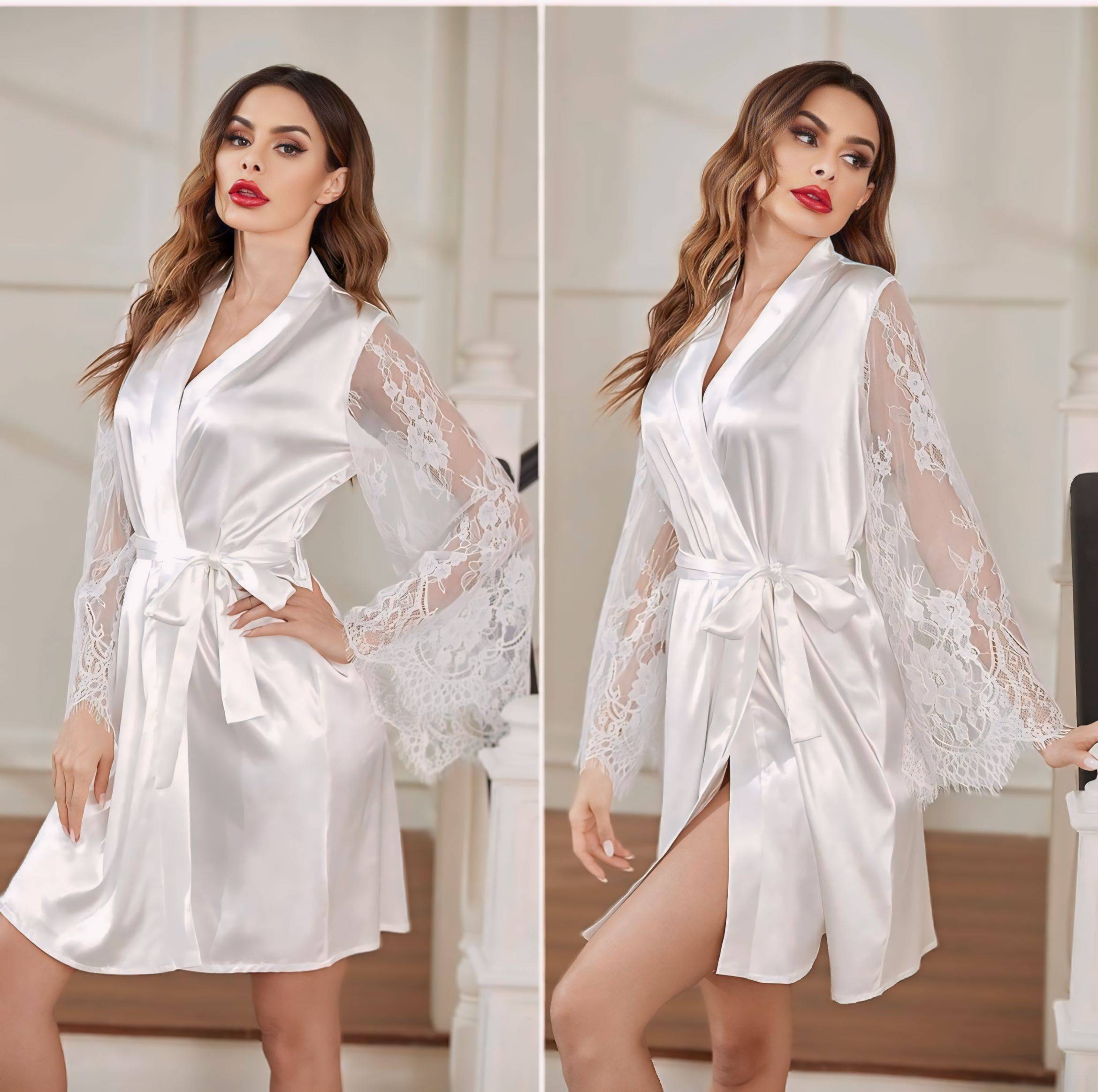 This Robe is attractive Nightwear. Beautiful and Excellent fitting. Very comfy to wear and comes in free size. Fancy Nightwear with lace/net work. Fabric Composition: Made with Soft and Fine Satin. Fancy; Stunning and Adorable Bedroom Night Wear with Silky and Smooth Feel. It gives a stylish and sensual look. This is a perfect gift for your loved ones; this can be gift wrapped as well.