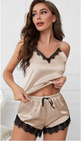 Crafted from luxurious satin with delicate lace accents, this set gives a relaxed and comfortable wear. The satin fabric feels smooth and soft against the skin, providing a gentle touch that enhances your overall comfort. The lace detailing adds a hint of glamour. The relaxed fabric ensures ease of movement, allowing you to go about your day with grace and ease.