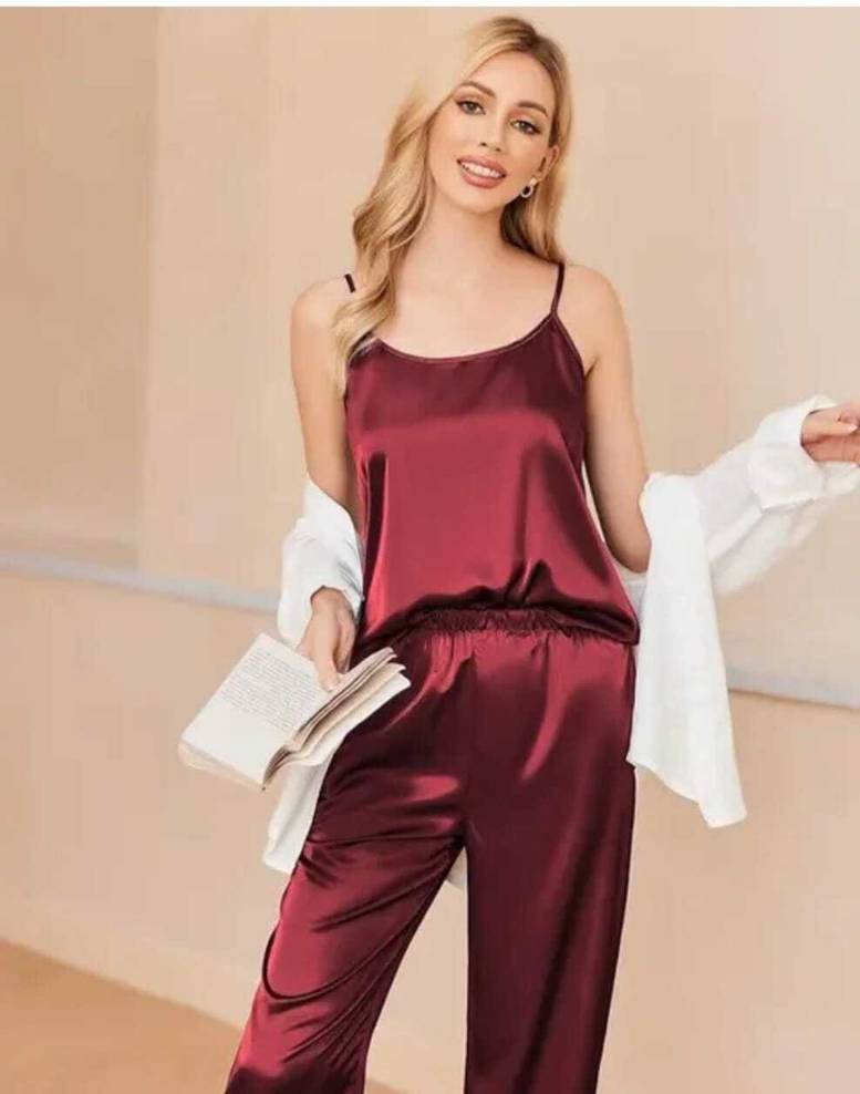 Mixopia Women Top & Pyjama Set Maroon Solid