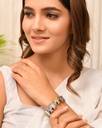The size of the bangle is approximately 2.5 inches. Since, it has an opebale clasp, it can easily fit to a wrist size of 2.4 and 2.6 and 2.8, The Piece is designed in antique finish and is handmade, minor imperfections in design, shape, color, weight may be considered as uniqueness of handicraft and not defect., The vintage oxidized plating creates a beautiful antique look that highlights the meticulous textures and floral patterns across the metal., Built to last, these sturdy metal alloy bracelets offer a high-end look while remaining comfortable enough for long-wear during weddings and festivals., The collection includes a classic open-ended tribal kada with ball terminals and a wide-band filigree cuff for a diverse jewelry wardrobe., This bangle can be worn in any occasion whether it is a wedding, anniversary, festival, engagement, etc. It can be an ultimate gifting option for your special ones or even good for unexpected invitations.