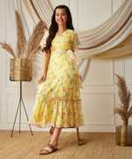 Mizuki Girls Maxi/Full Length Casual Dress (Yellow, Short Sleeve)