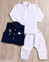 The set includes a classic white kurta crafted from premium fabric, ensuring a soft and breathable feel for all-day wear. The kurta features a timeless round neck design and long sleeves, providing a clean and polished look. Its straight fit allows ease of movement, making it perfect for energetic boys.