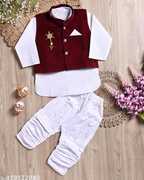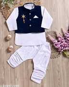 This Kids Boys Kurta Pajama Set with Jacket is thoughtfully designed to celebrate the rich heritage of traditional wear while incorporating modern elements for a fashionable twist. The fine details, premium craftsmanship, and versatile design make it a standout choice for parents who value quality and style.