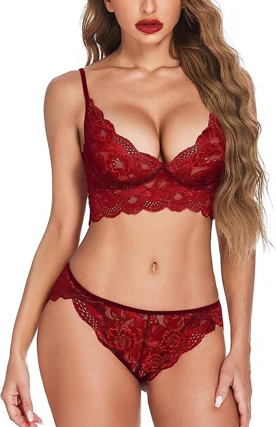 Babydoll Set Self Design Red, Black, Blue, Maroon, Green, Pink, Multicolor Lingerie Set