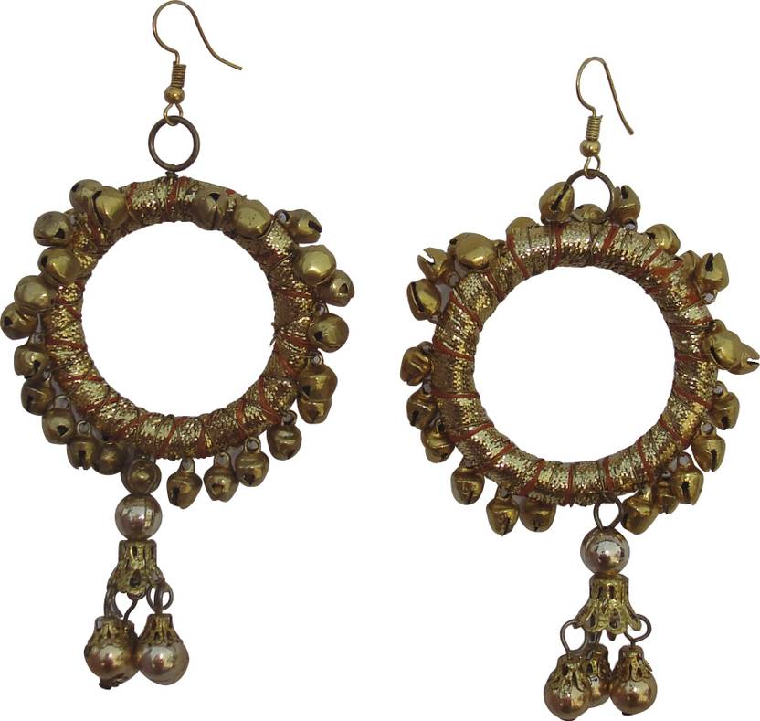mkb Handcrafted Golden Colour Gujrati Earring with Gota & Ghungro Metal Drops & Danglers