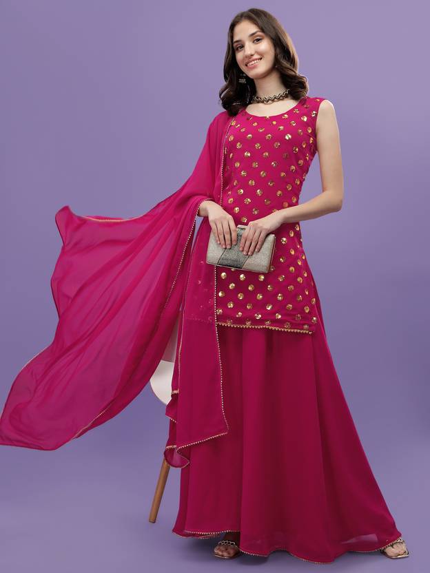 parrot creation Women Ethnic Top Sharara Dupatta Set