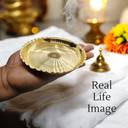 MLE Decorative Brass Puja Thali Plates, 11.5 cm, Traditional Design, Set of 2, Gold Brass (2 Pieces, Gold)